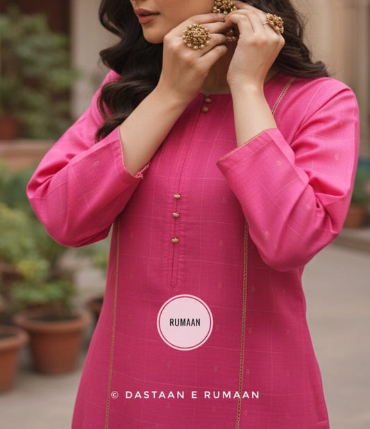 At Dastaan e Rumaan, we are on a mesmerizing journey, infusing enchanting heirlooms of Pakistani traditional textiles with a vibrant and contemporary fashion twist. Watch as the ancient artistry weaves the stories of modern allure and we paint a masterpiece that will leave hearts captivated. Let's infuse the past with the present, creating an artistic harmony that whispers the echoes of time while embracing the zest of the moment. Together, we'll redefine elegance and make the world fall in love with the magicย ofย ourย craft.