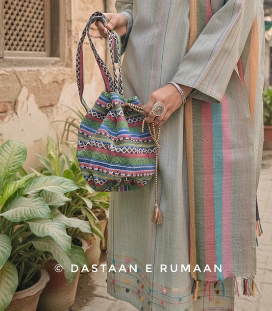 Our fabric is both stylish and sustainable, designed with care to protect the environment. Our studio is committed to using less water and electricity responsibly, and is plastic-free, almost. Dastaan e Rumaan is proudly working on recycled products made with post-used plastic wrappers.