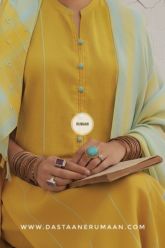 At Dastaan e Rumaan, we are on a mesmerizing journey, infusing enchanting heirlooms of Pakistani traditional textiles with a vibrant and contemporary fashion twist. Watch as the ancient artistry weaves the stories of modern allure and we paint a masterpiece that will leave hearts captivated. Let's infuse the past with the present, creating an artistic harmony that whispers the echoes of time while embracing the zest of the moment. Together, we'll redefine elegance and make the world fall in love with the magicย ofย ourย craft.