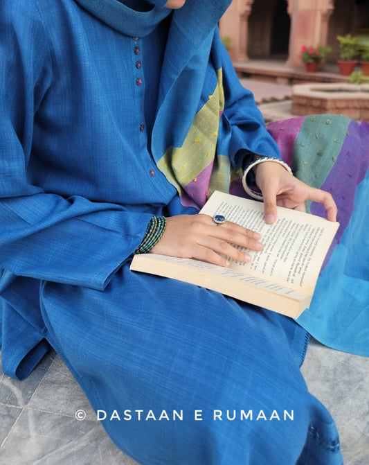 Our fabric is both stylish and sustainable, designed with care to protect the environment. Our studio is committed to using less water and electricity responsibly, and is plastic-free, almost. Dastaan e Rumaan is proudly working on recycled products made with post-used plastic wrappers.