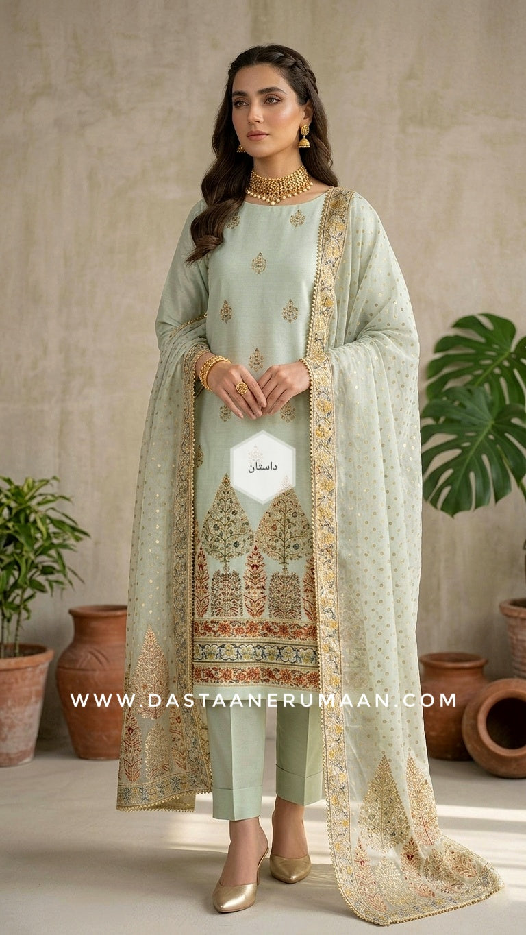 Redefine elegance in Dastaan's Block printed suits, blending heritage with contemporary style. These are statement of beauty, artistry and class.