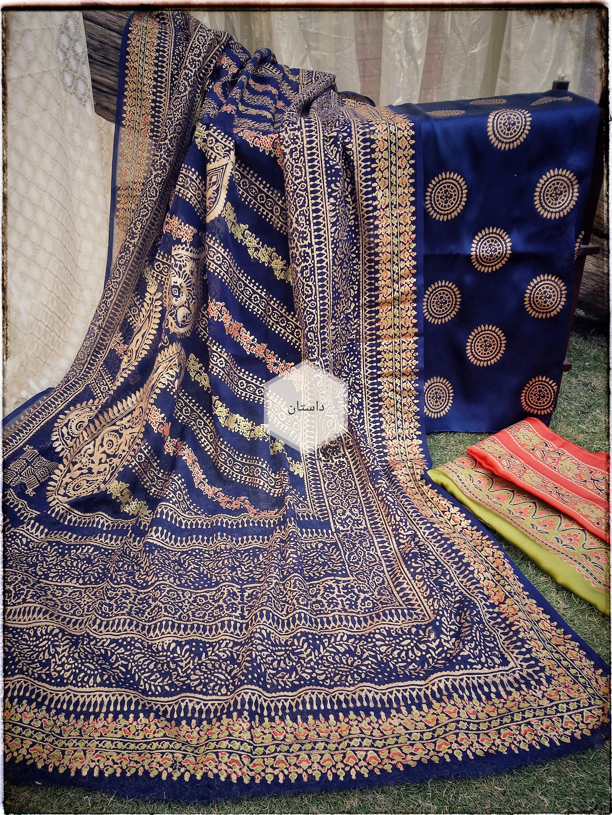 Redefine elegance in Dastaan's Block printed suits, blending heritage with contemporary style. These are statement of beauty, artistry and class.