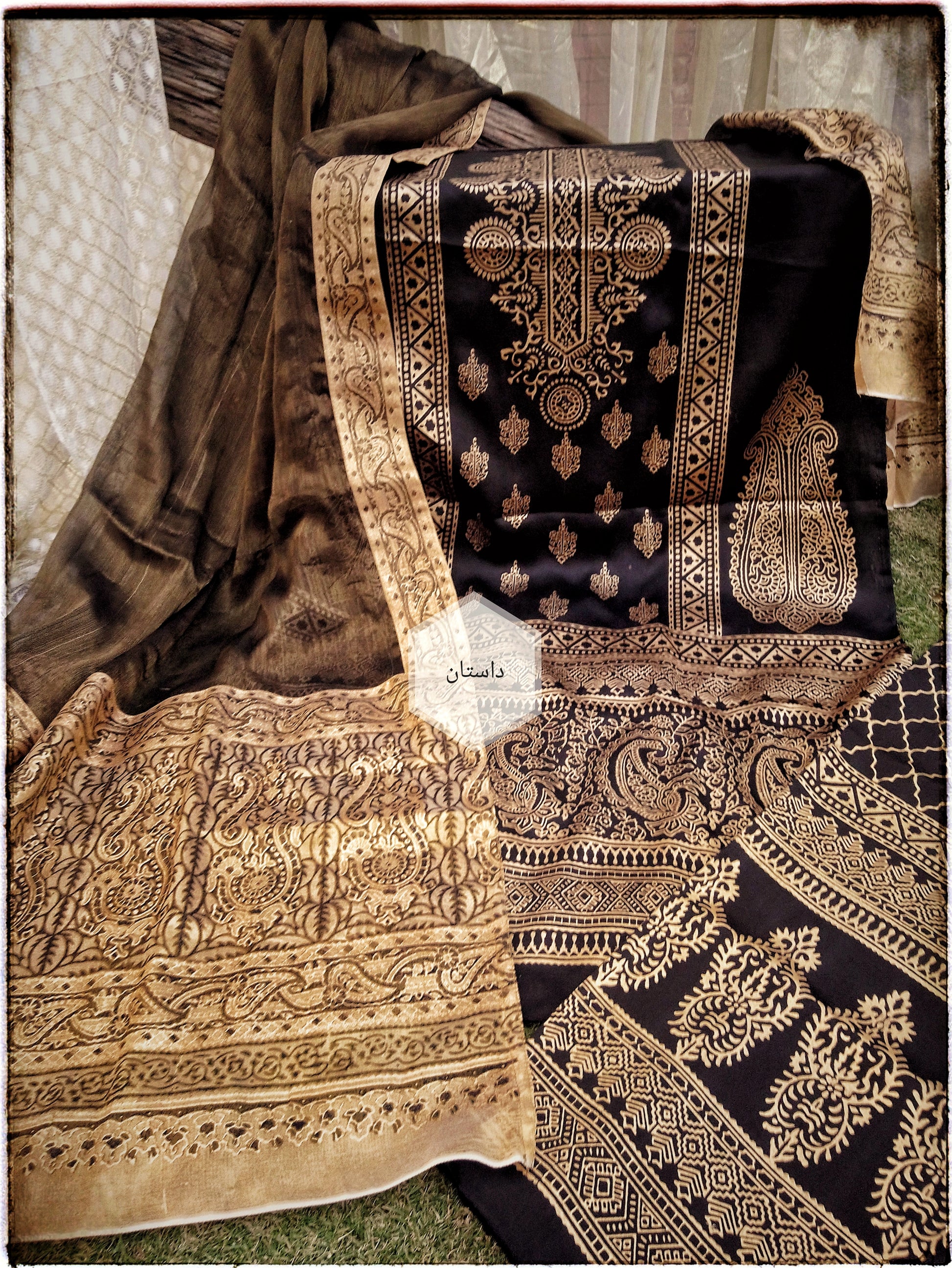 Redefine elegance in Dastaan's Block printed suits, blending heritage with contemporary style. These are statement of beauty, artistry and class.