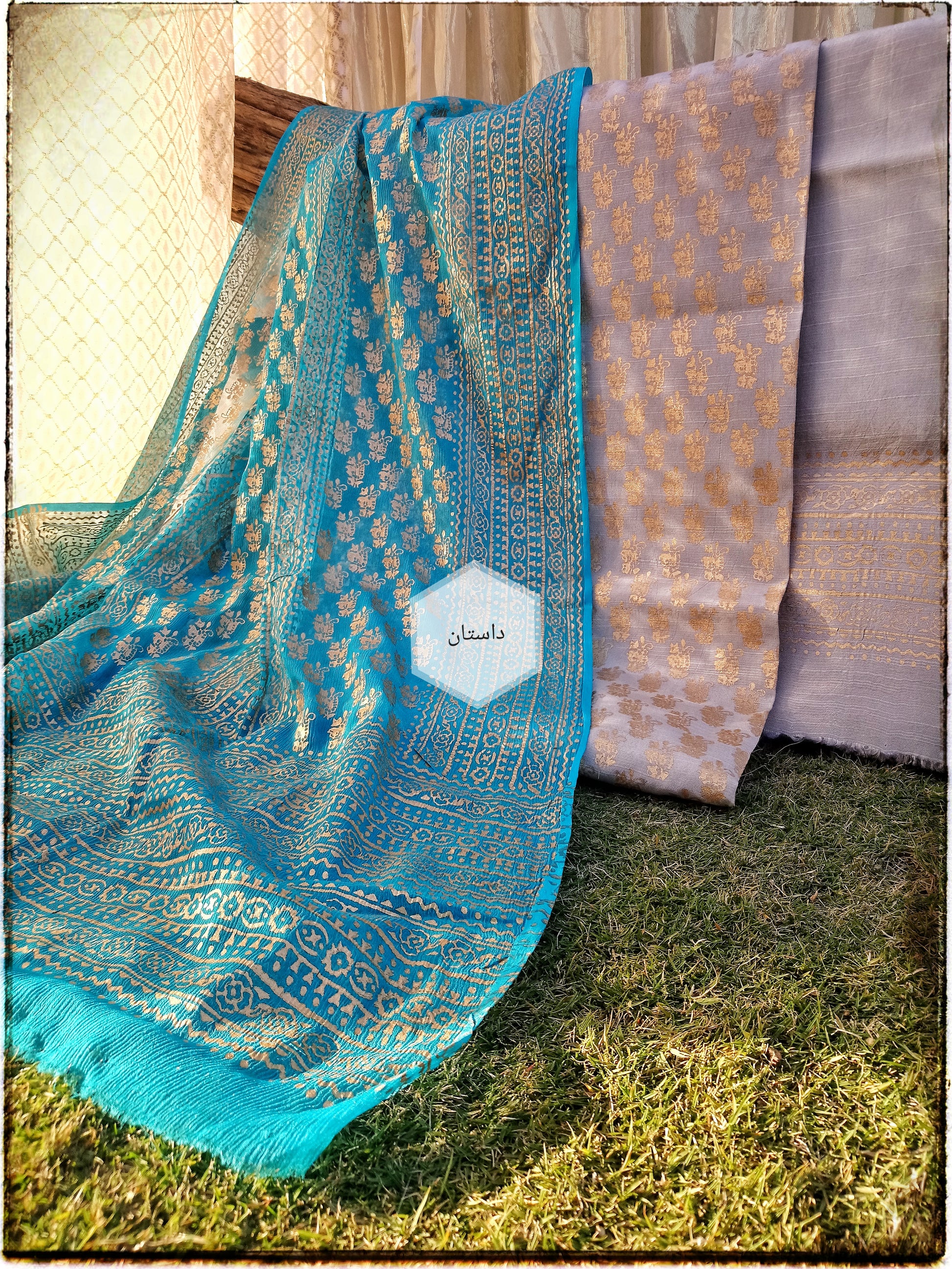 Redefine elegance in Dastaan's Block printed suits, blending heritage with contemporary style. These are statement of beauty, artistry and class.