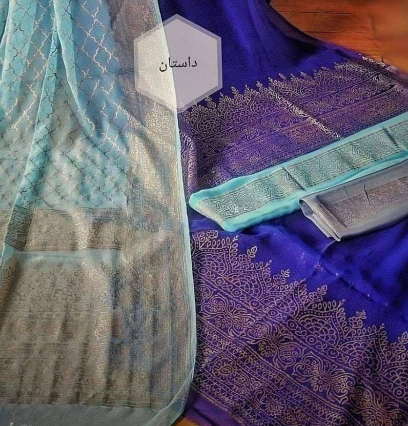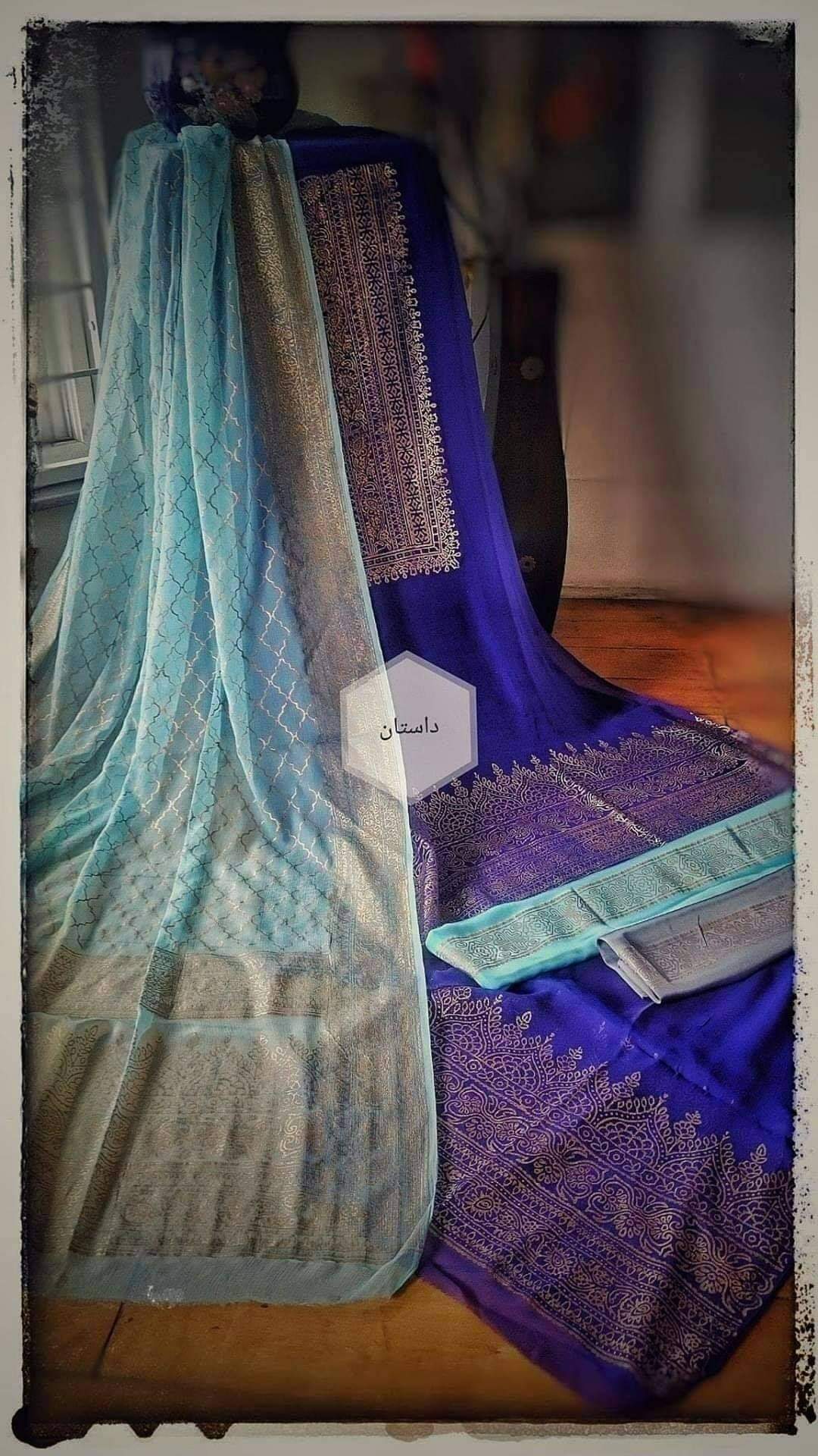 Redefine elegance in Dastaan's Block printed suits, blending heritage with contemporary style. These are statement of beauty, artistry and class.