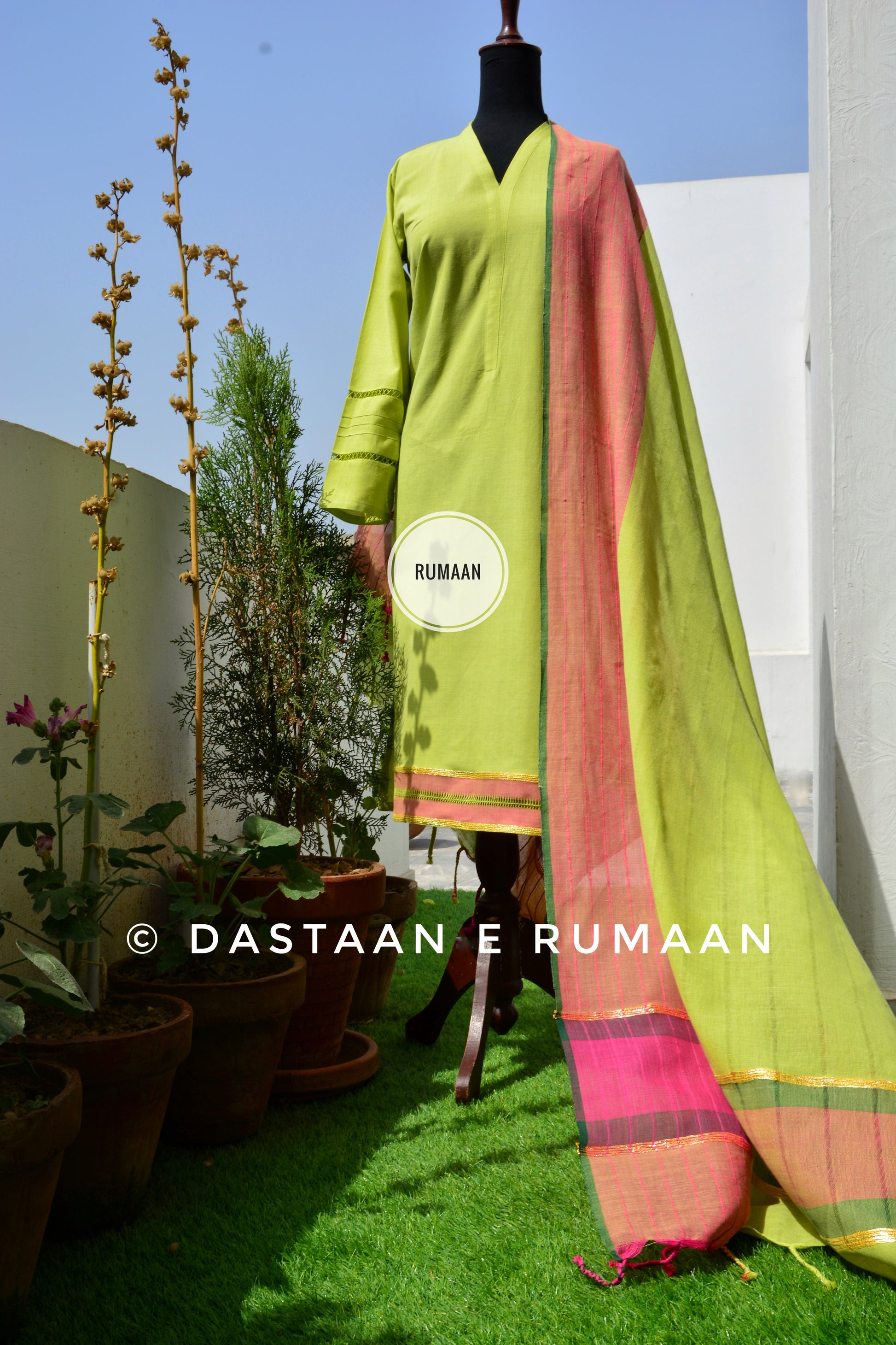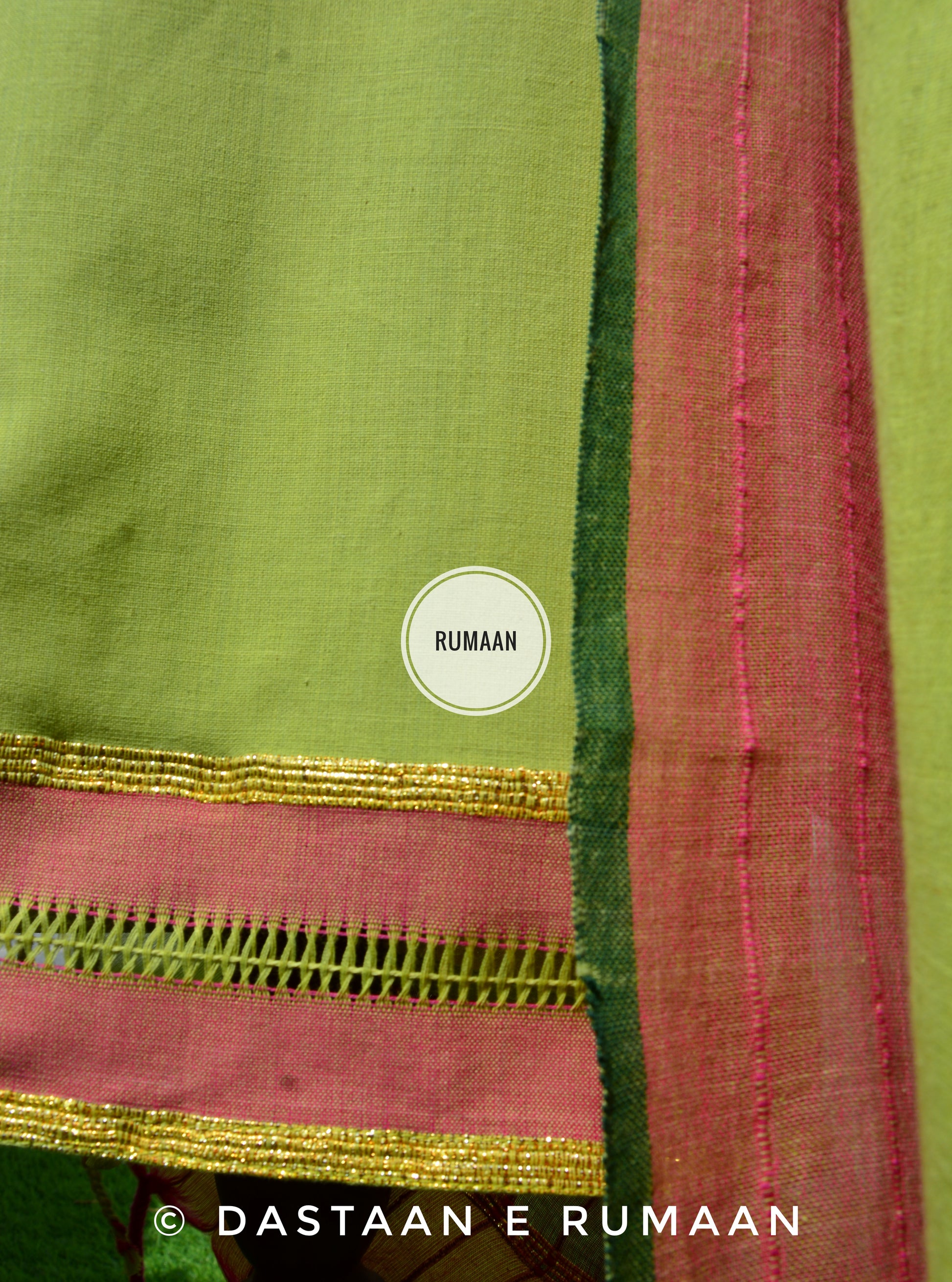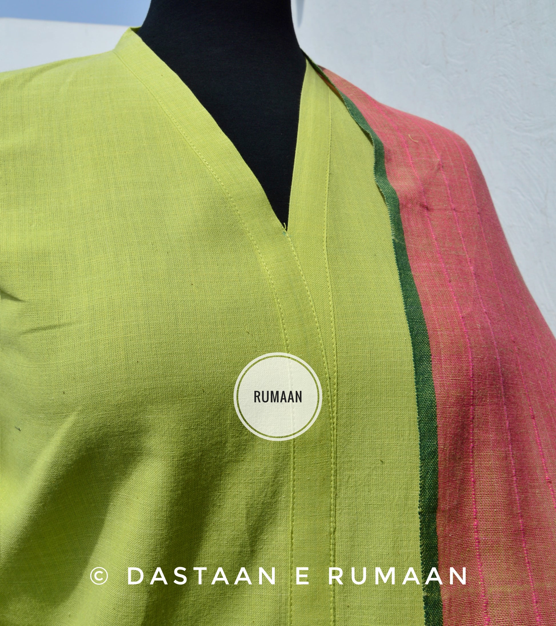 RUMAAN's Beautiful hand woven pure cotton stitched suit. Elevate your style in comfortable ethnic fabric.