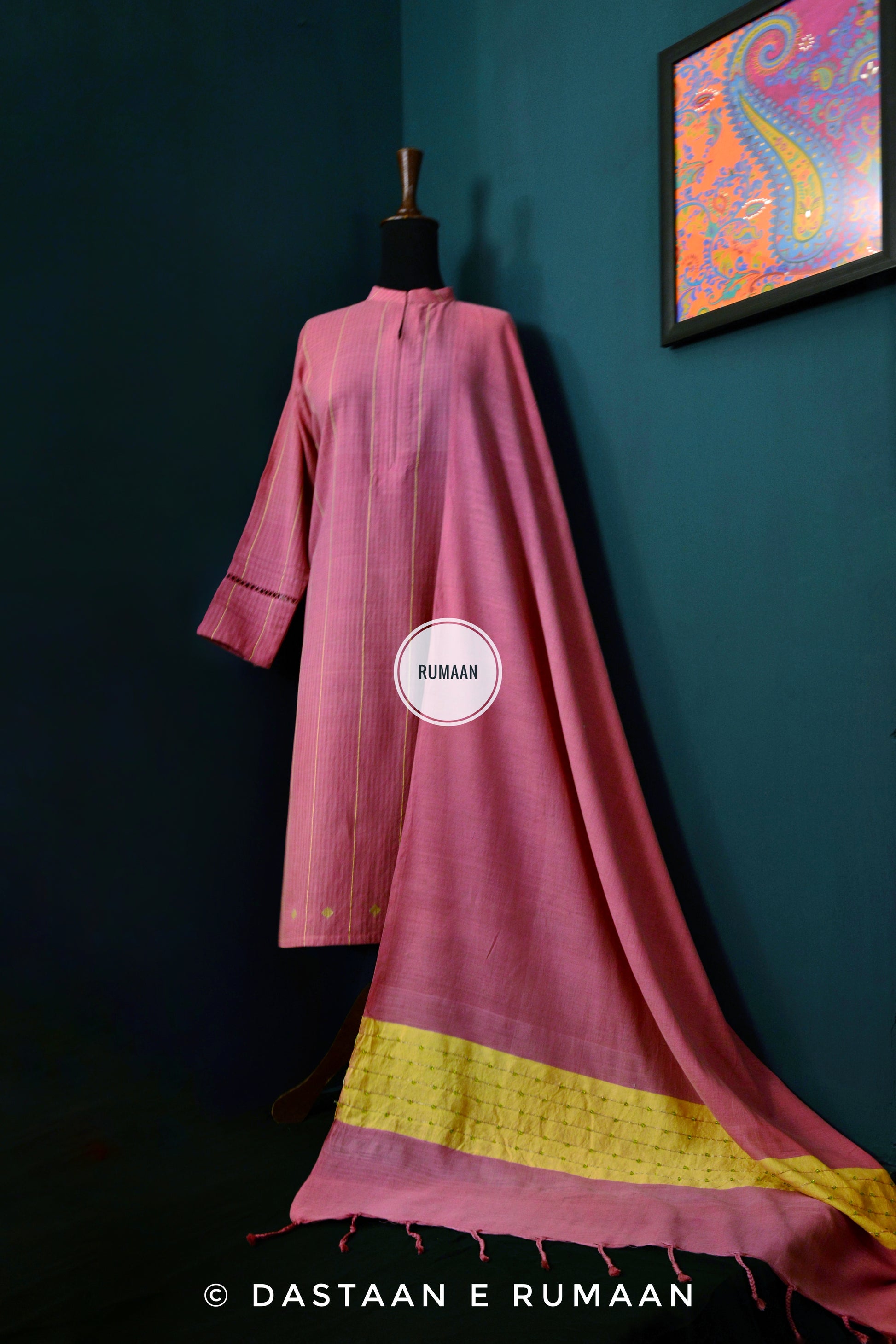 RUMAAN's Beautiful hand woven pure cotton stitched suit. Elevate your style in comfortable ethnic fabric.