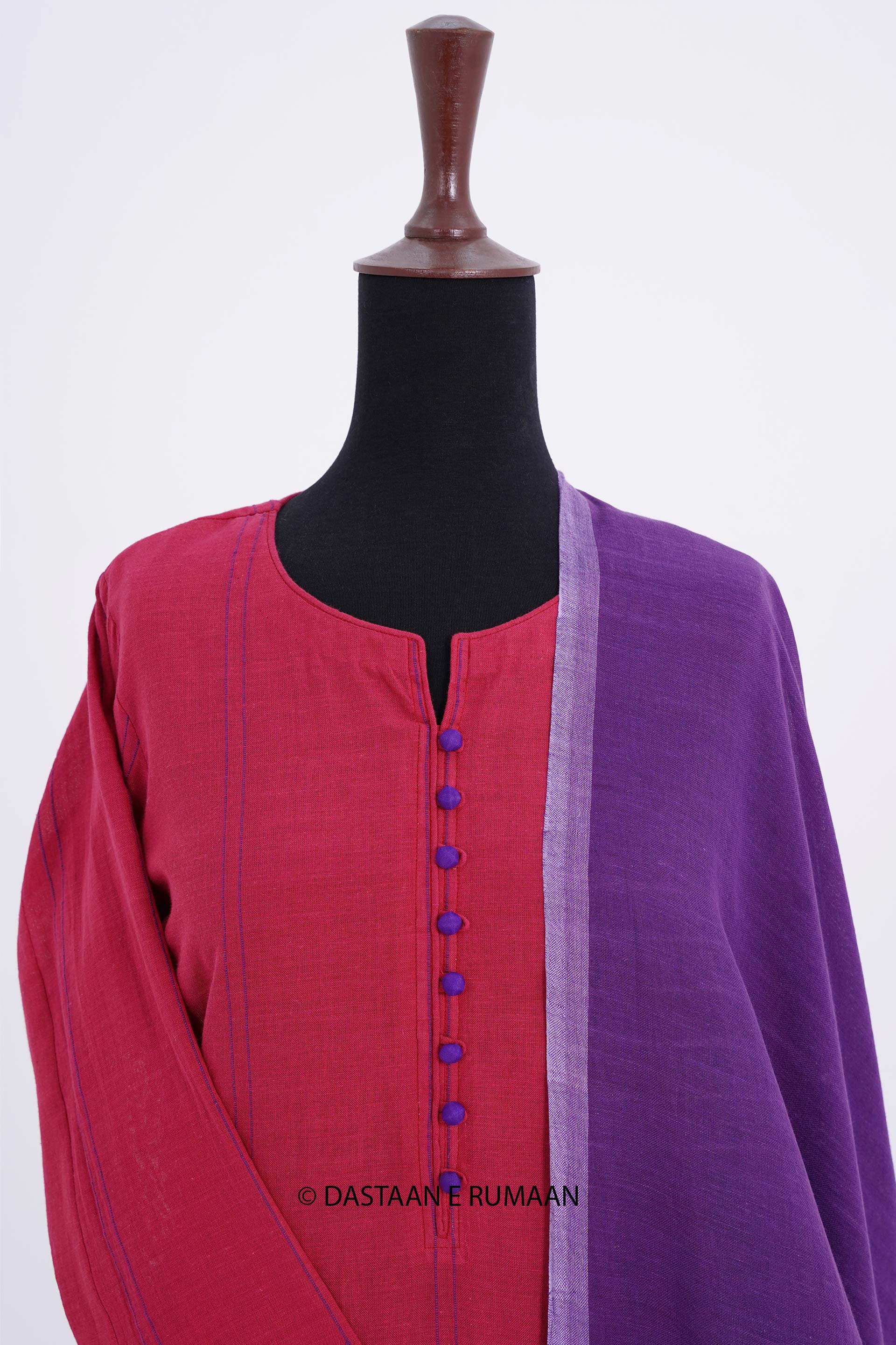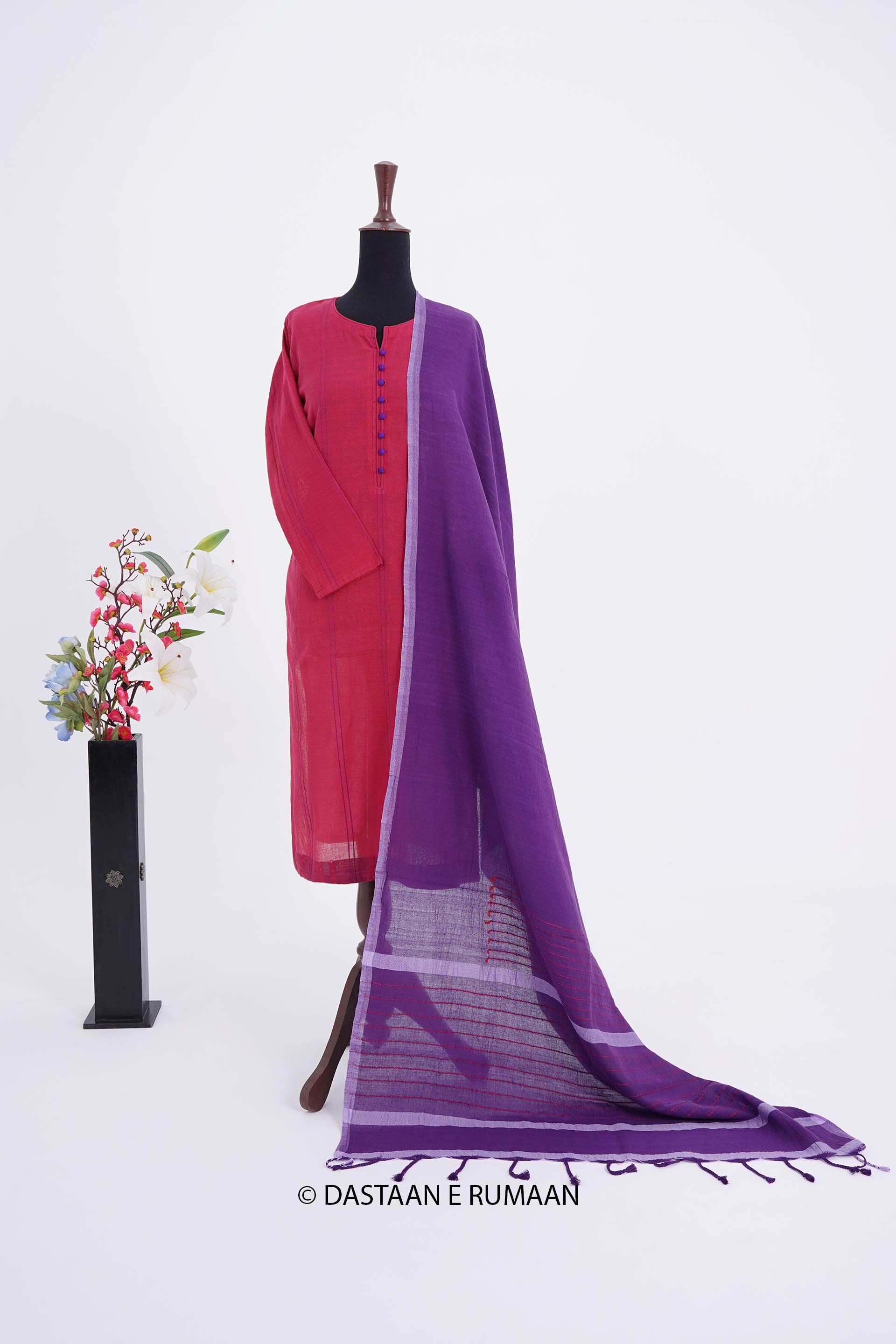 RUMAAN's Beautiful hand woven pure cotton stitched suit. Elevate your style in comfortable ethnic fabric.