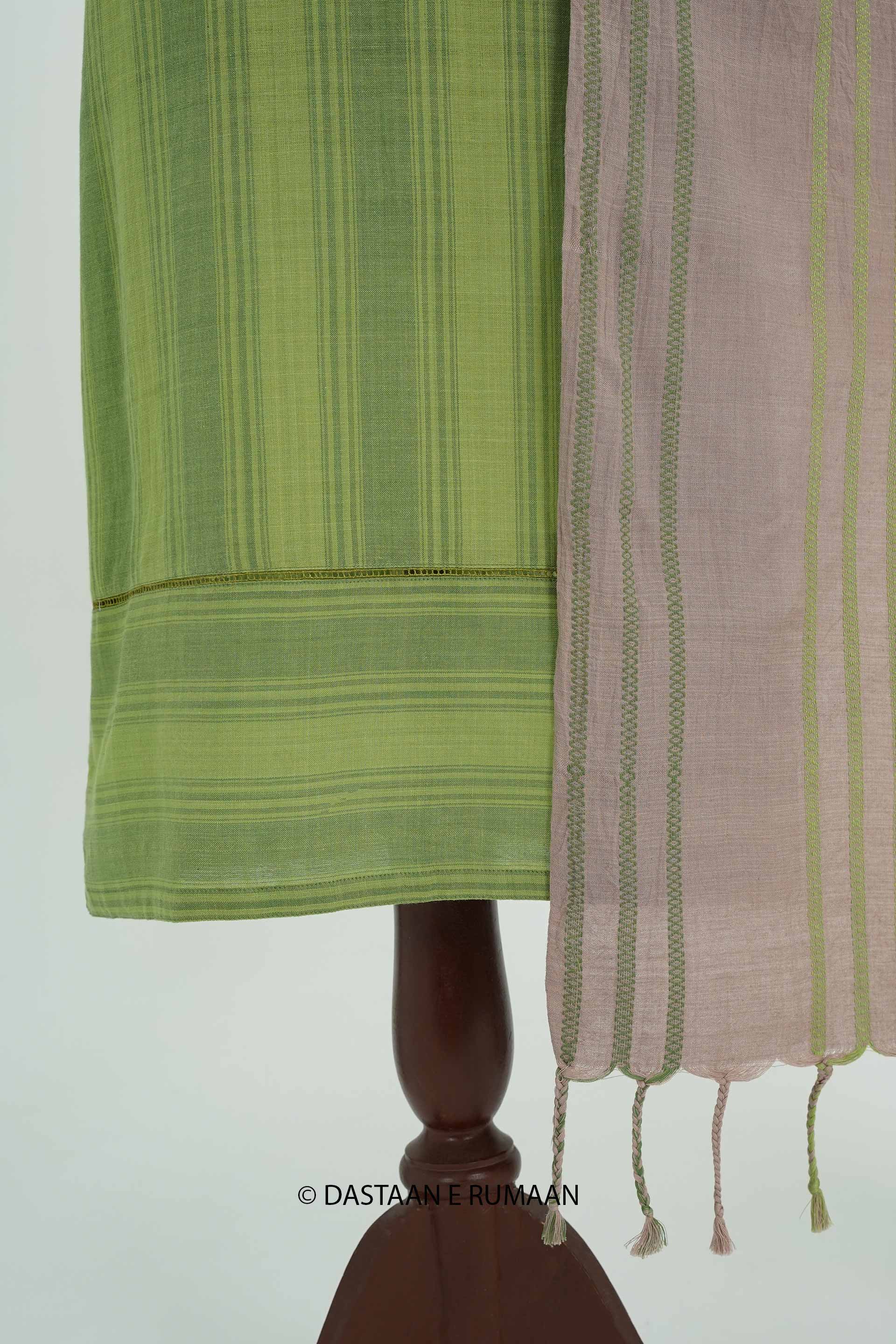 RUMAAN's Beautiful hand woven pure cotton stitched suit. Elevate your style in comfortable ethnic fabric.