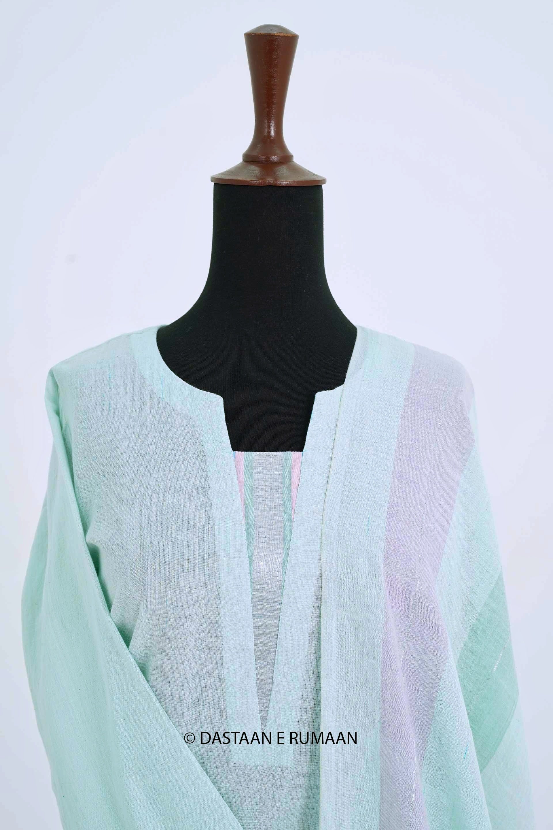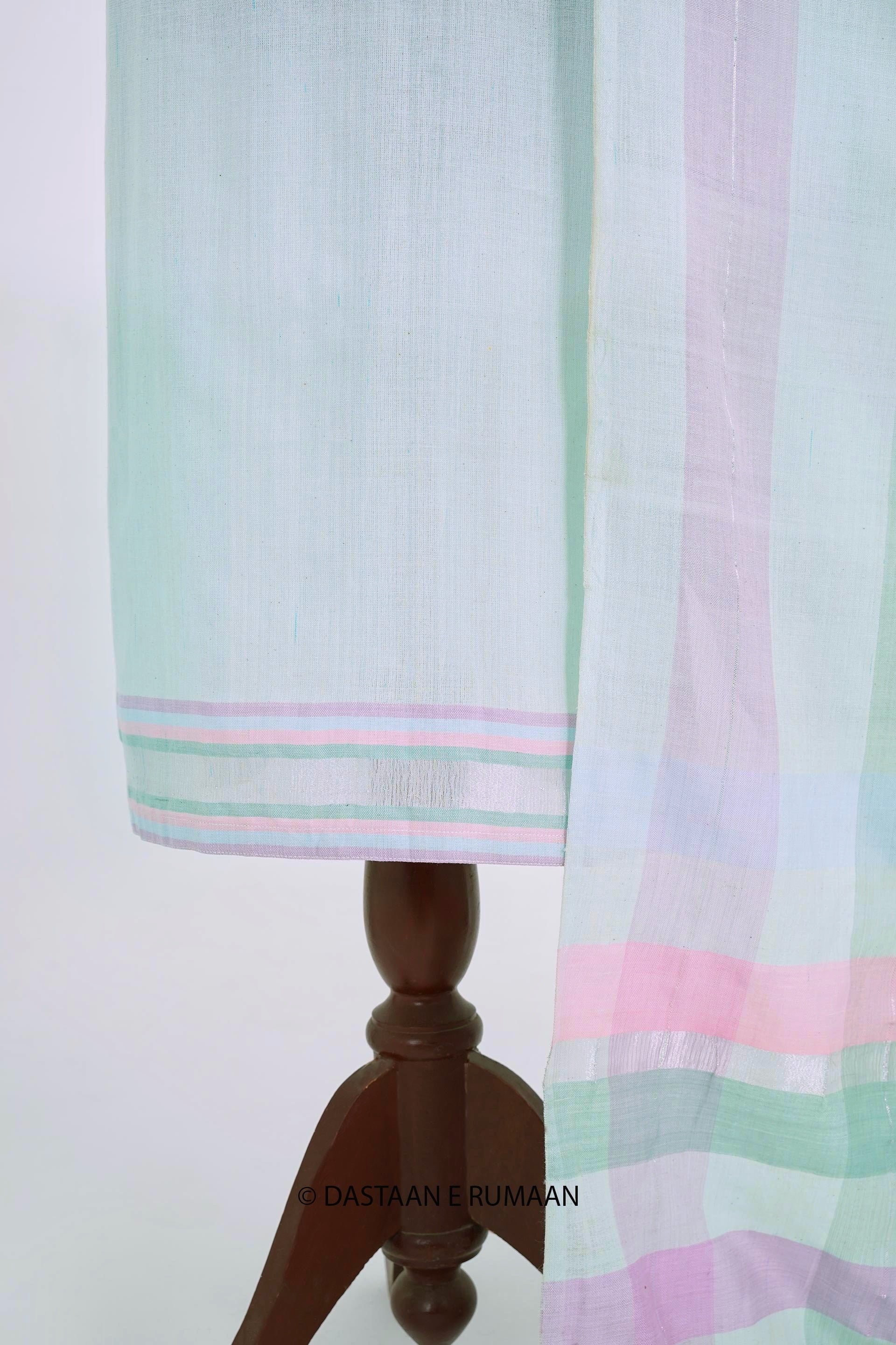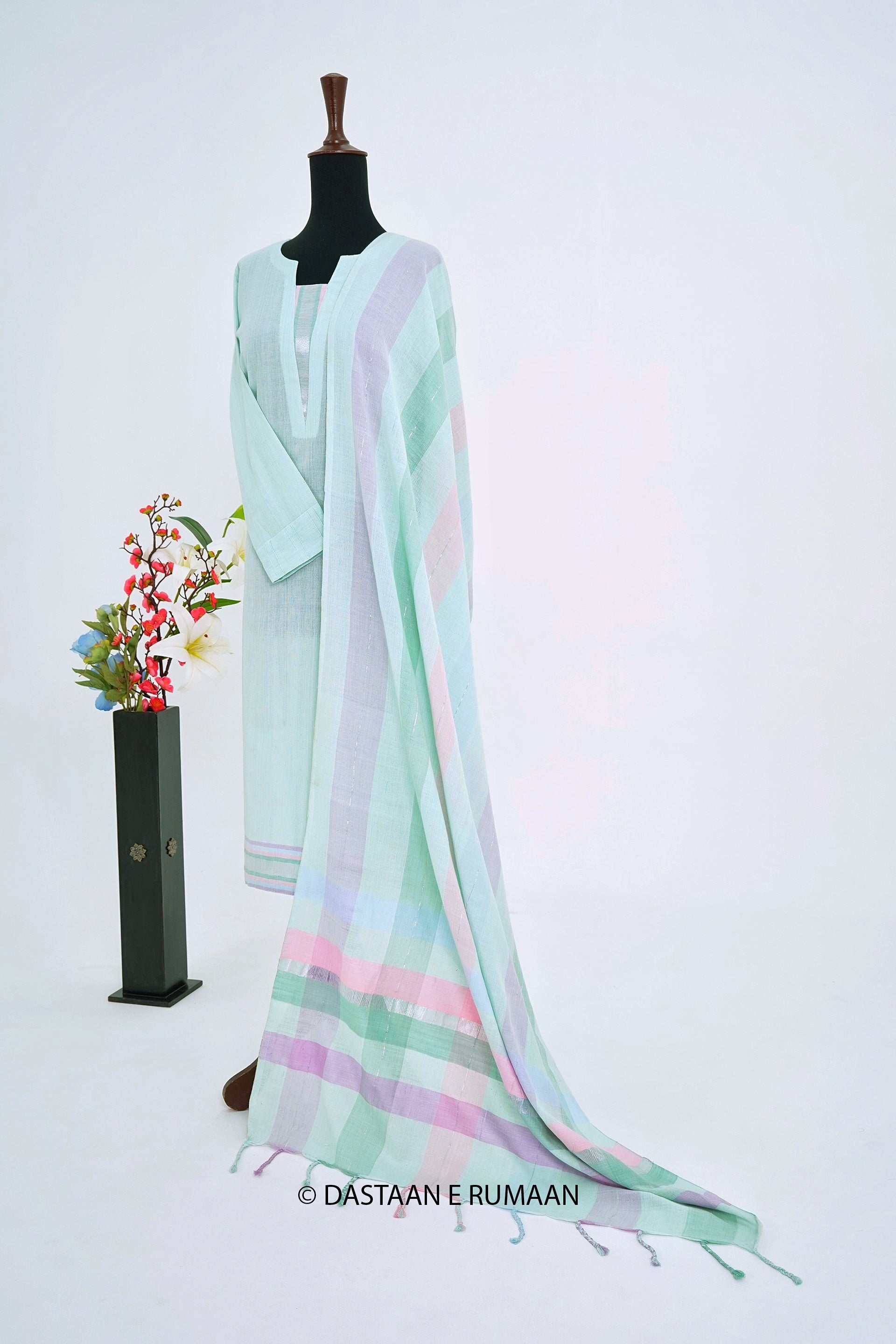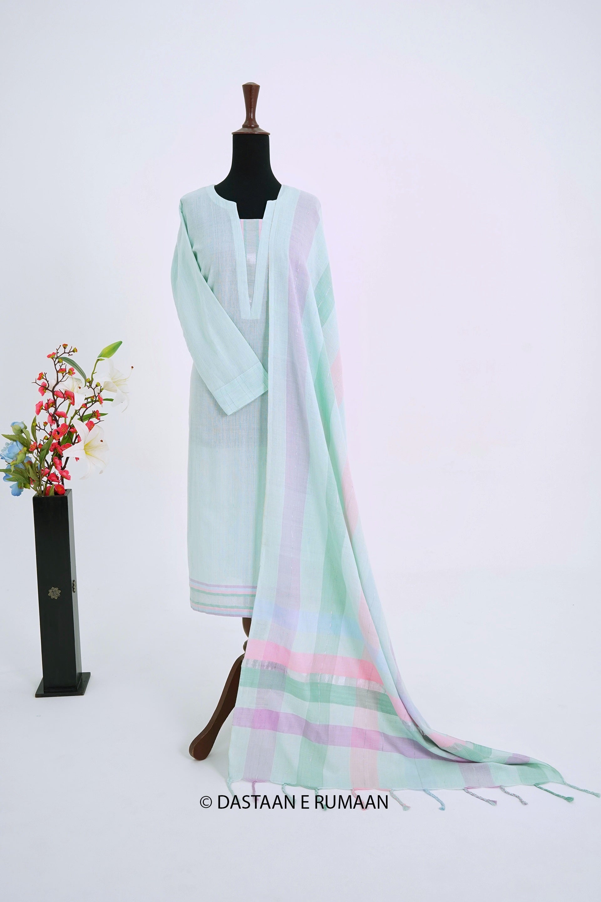 RUMAAN's Beautiful hand woven pure cotton stitched suit. Elevate your style in comfortable ethnic fabric.