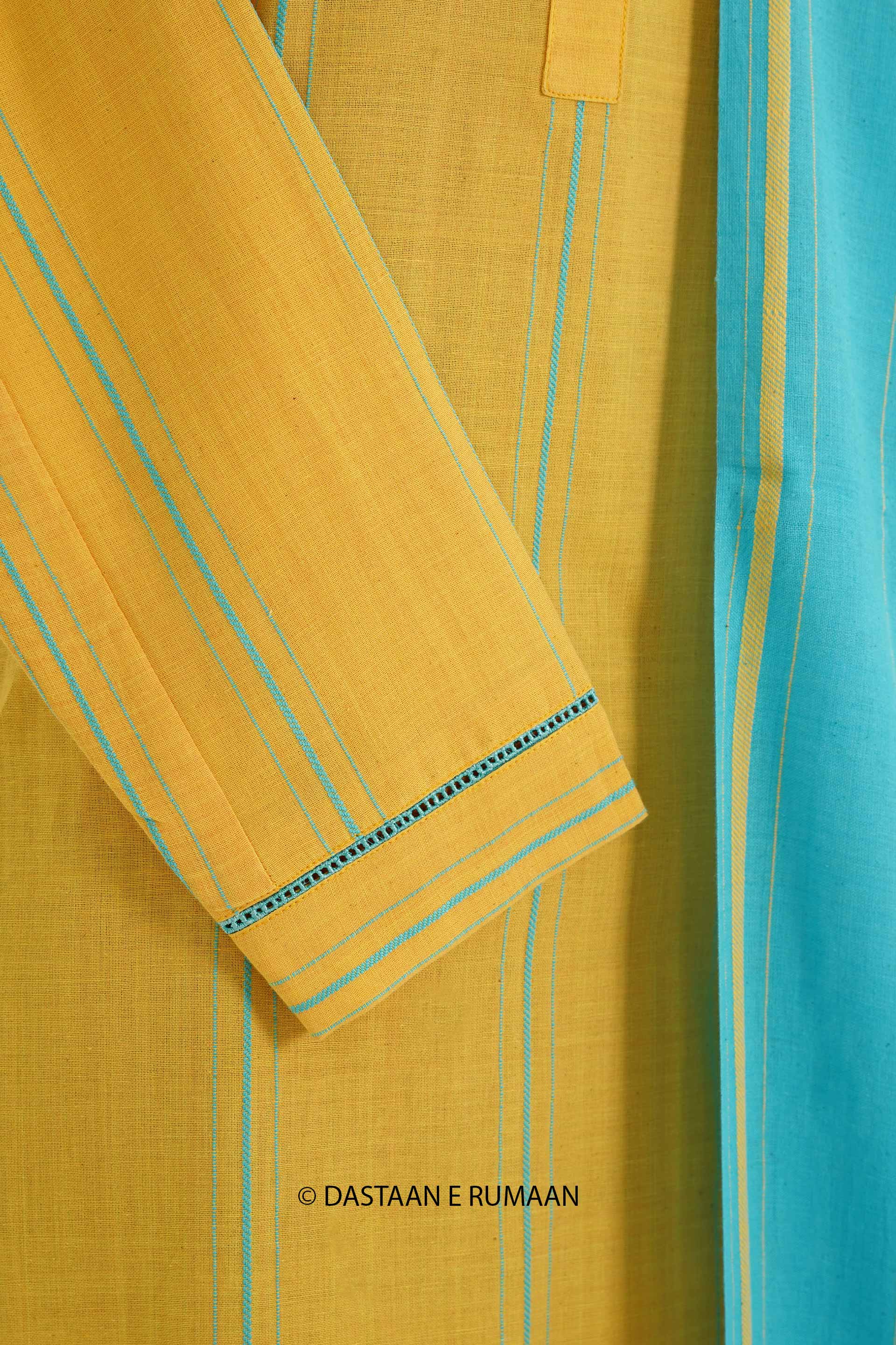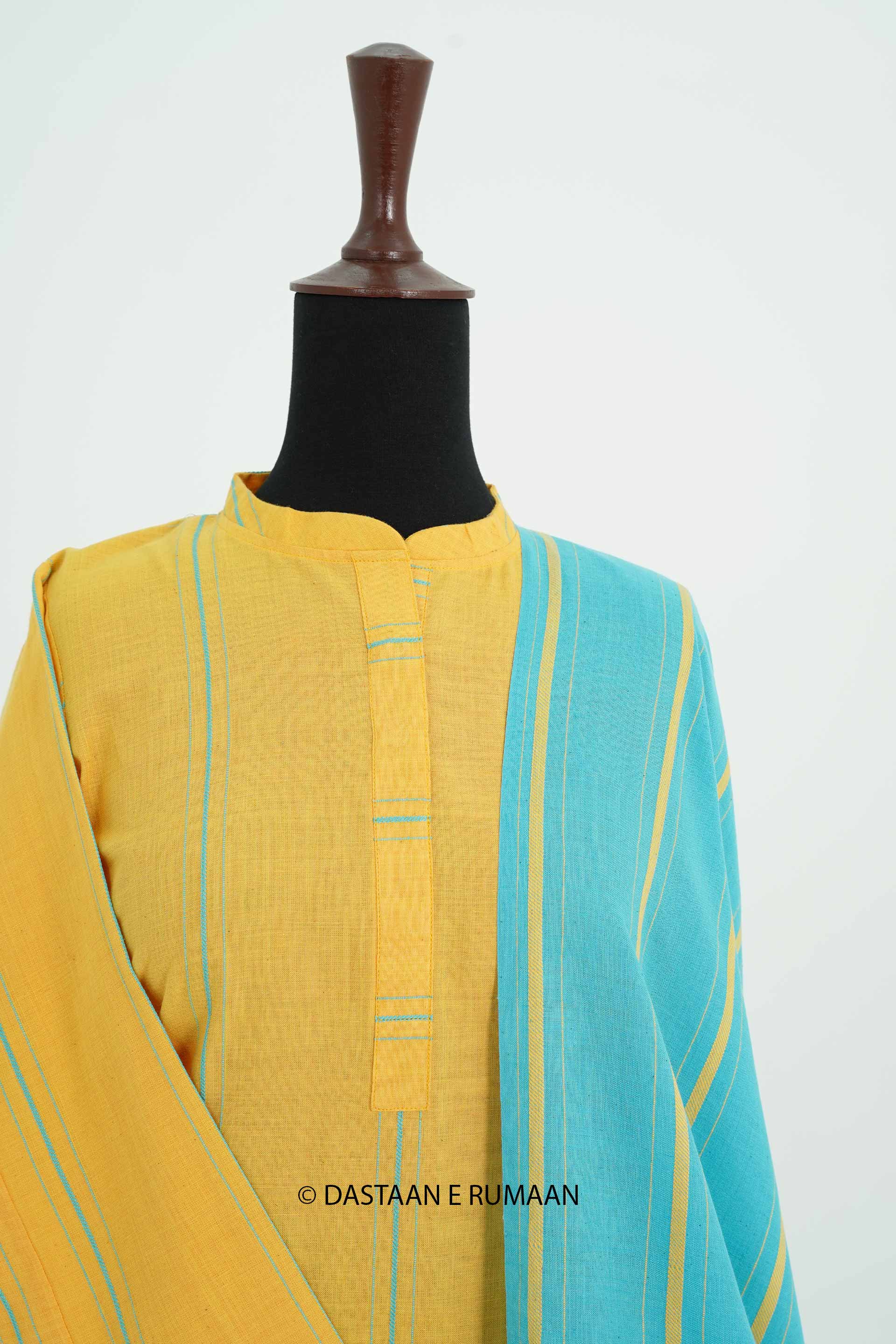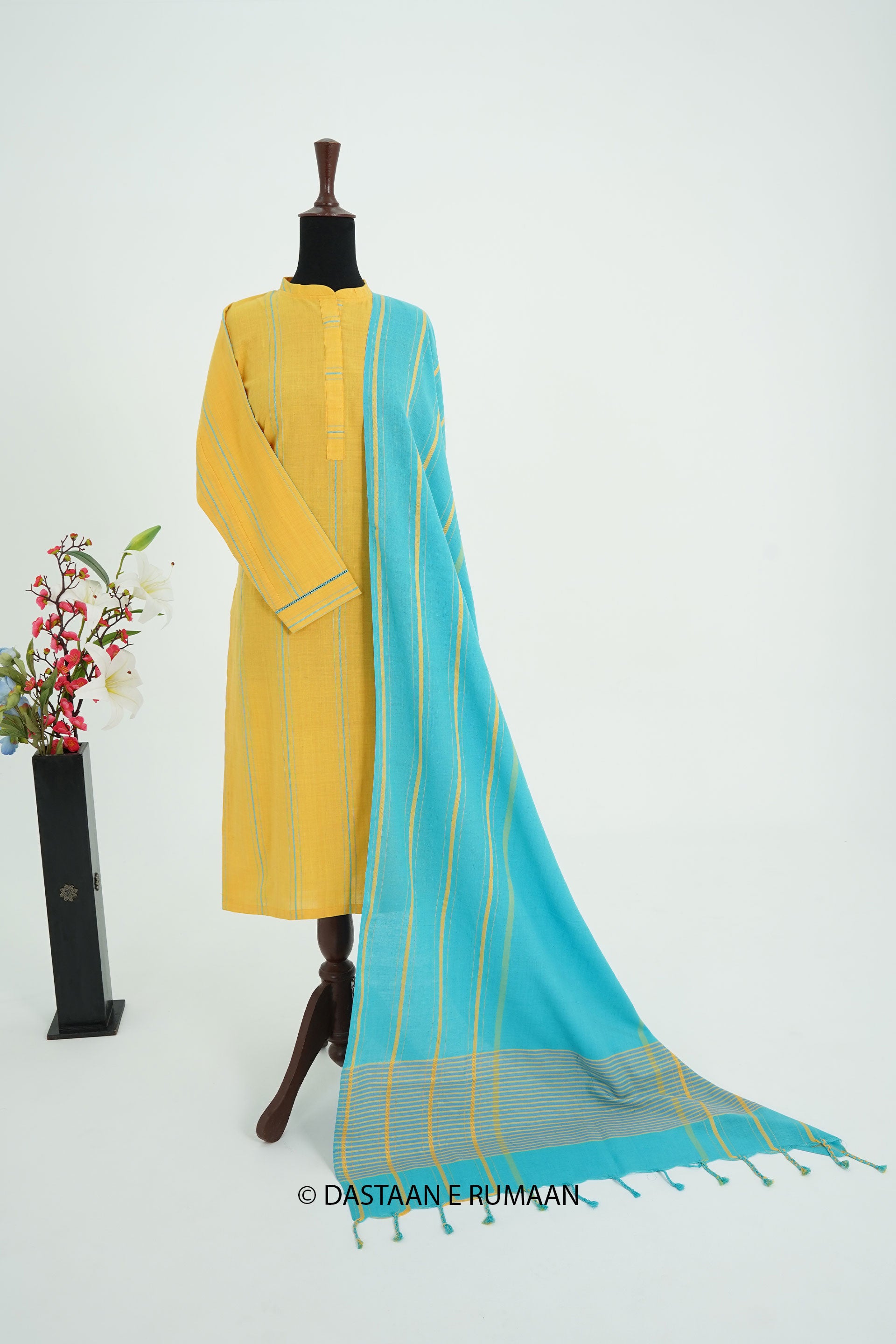 RUMAAN's Beautiful hand woven pure cotton stitched suit. Elevate your style in comfortable ethnic fabric.