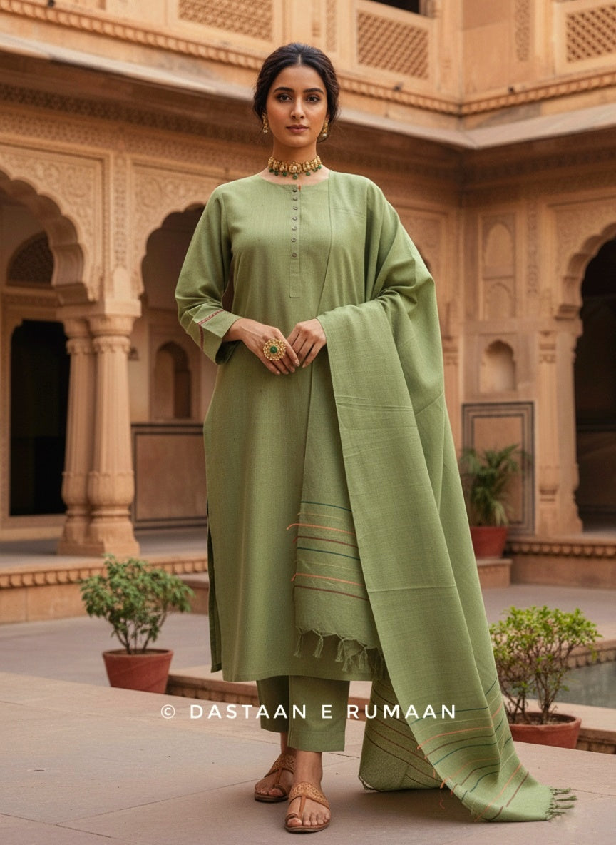 RUMAAN's Beautiful hand woven pure cotton stitched suit. Elevate your style in comfortable ethnic fabric.