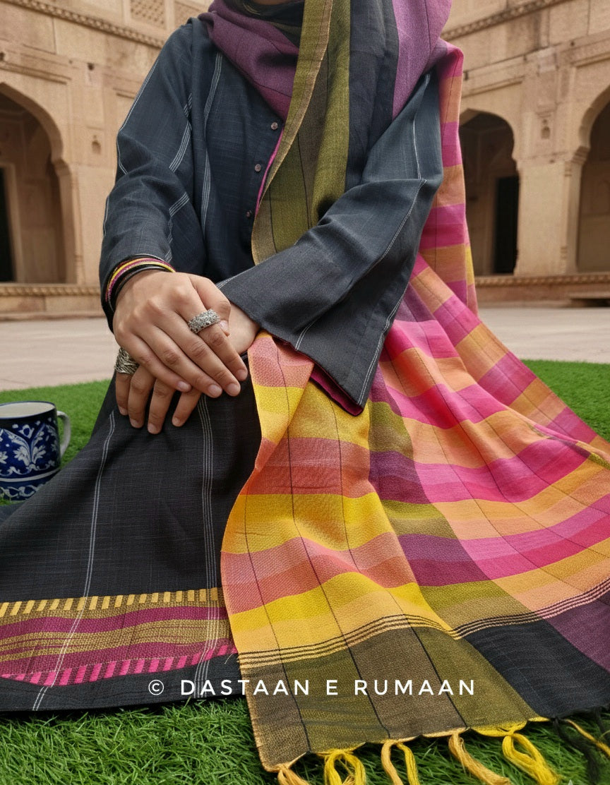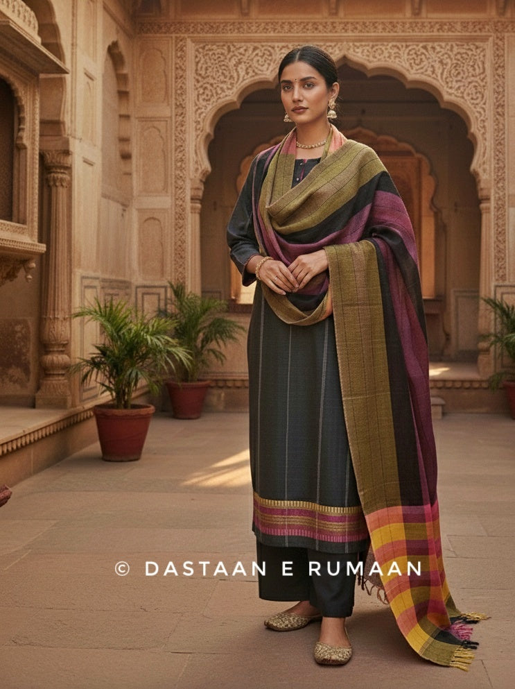 RUMAAN's Beautiful hand woven pure cotton stitched suit. Elevate your style in comfortable ethnic fabric.
