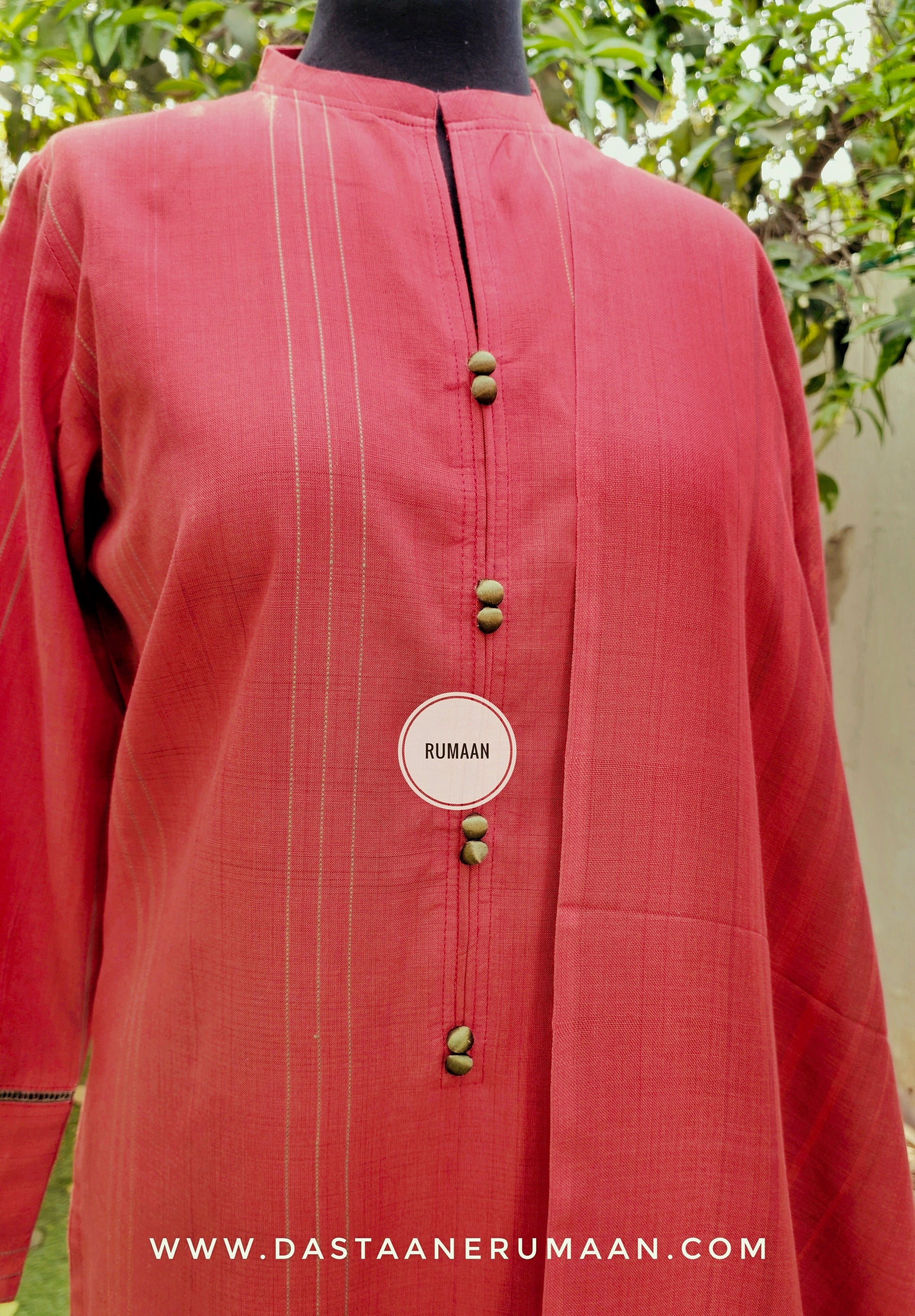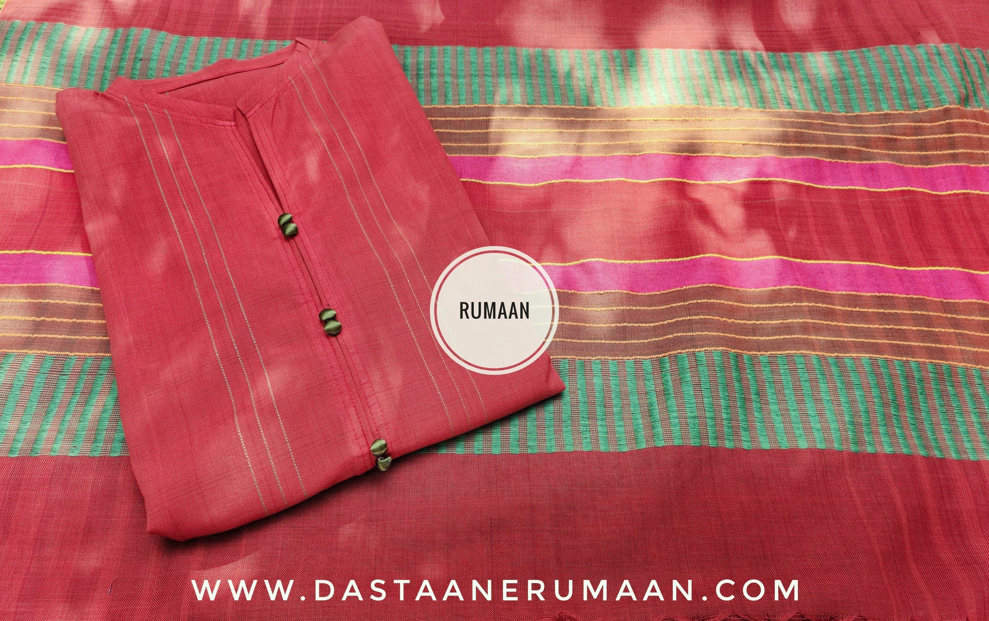 RUMAAN's Beautiful hand woven pure cotton stitched suit. Elevate your style in comfortable ethnic fabric.