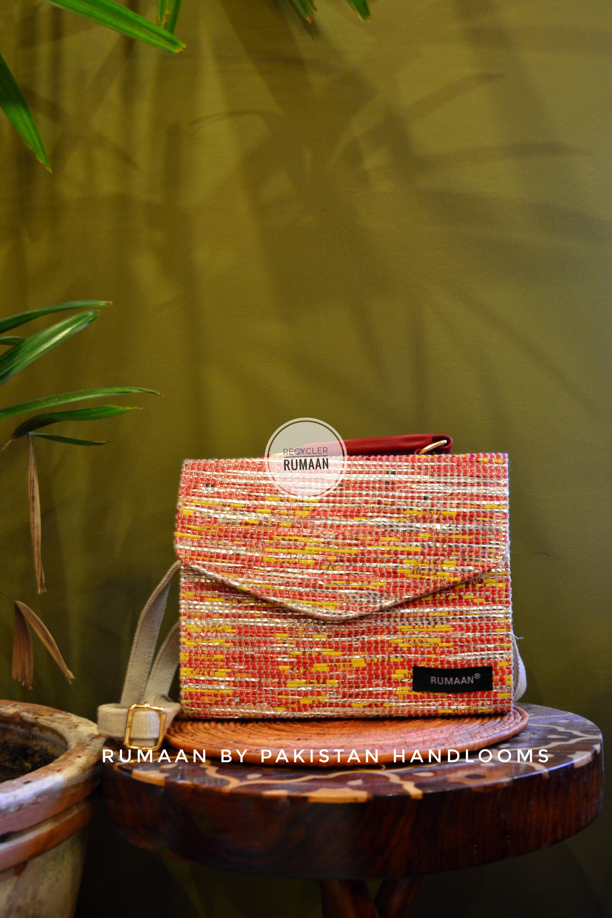Stylish Purse made out of hand woven post used plastic wrappers/MLP.