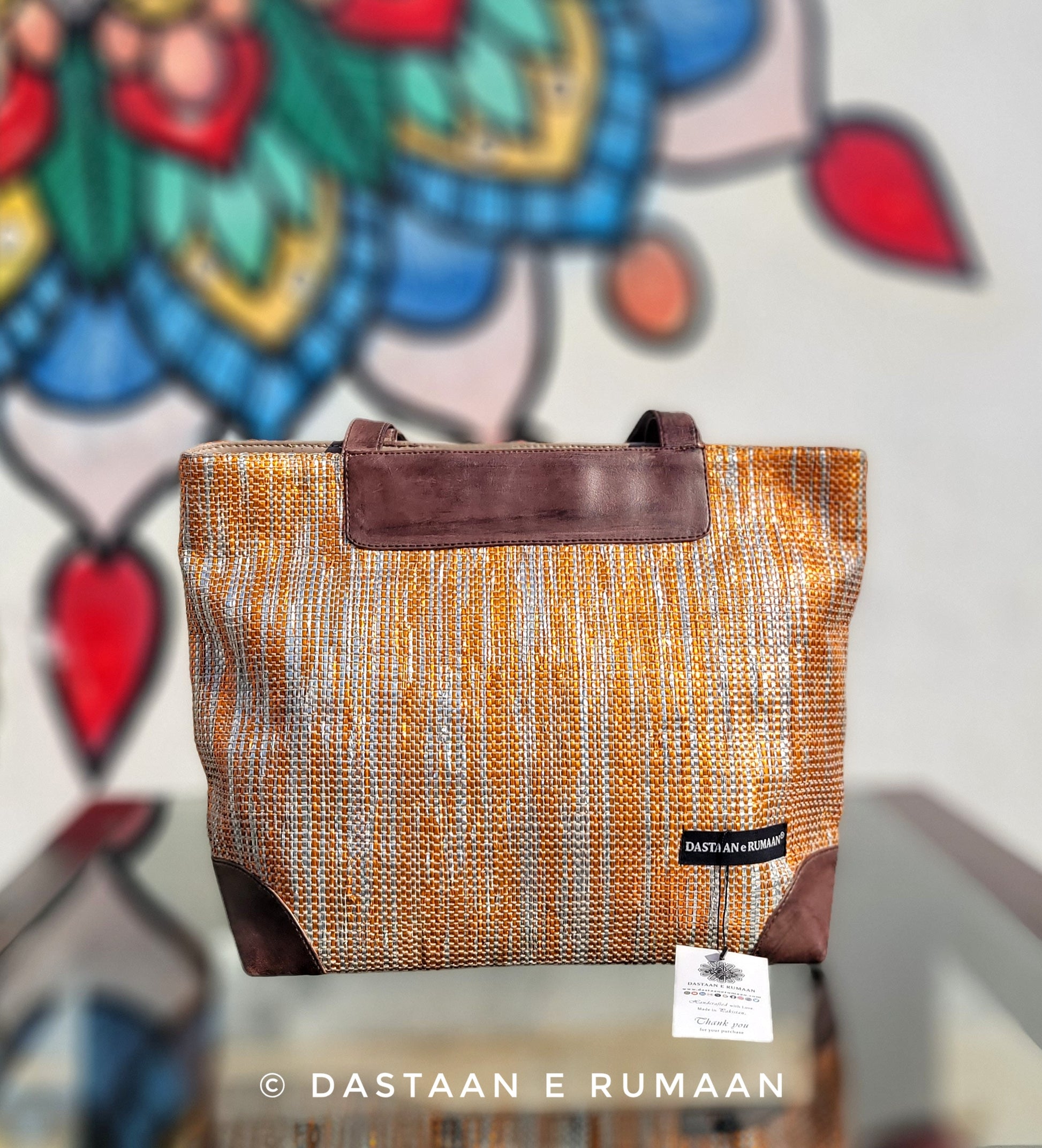 This product is handmade using post-used plastic wrappers and multilayered packaging, collected and transformed through an eco-conscious weaving process. Recycler Rumaan is sustainable project of Dastaan E Rumaan ®, each piece reflects our commitment to sustainability and craftsmanship.