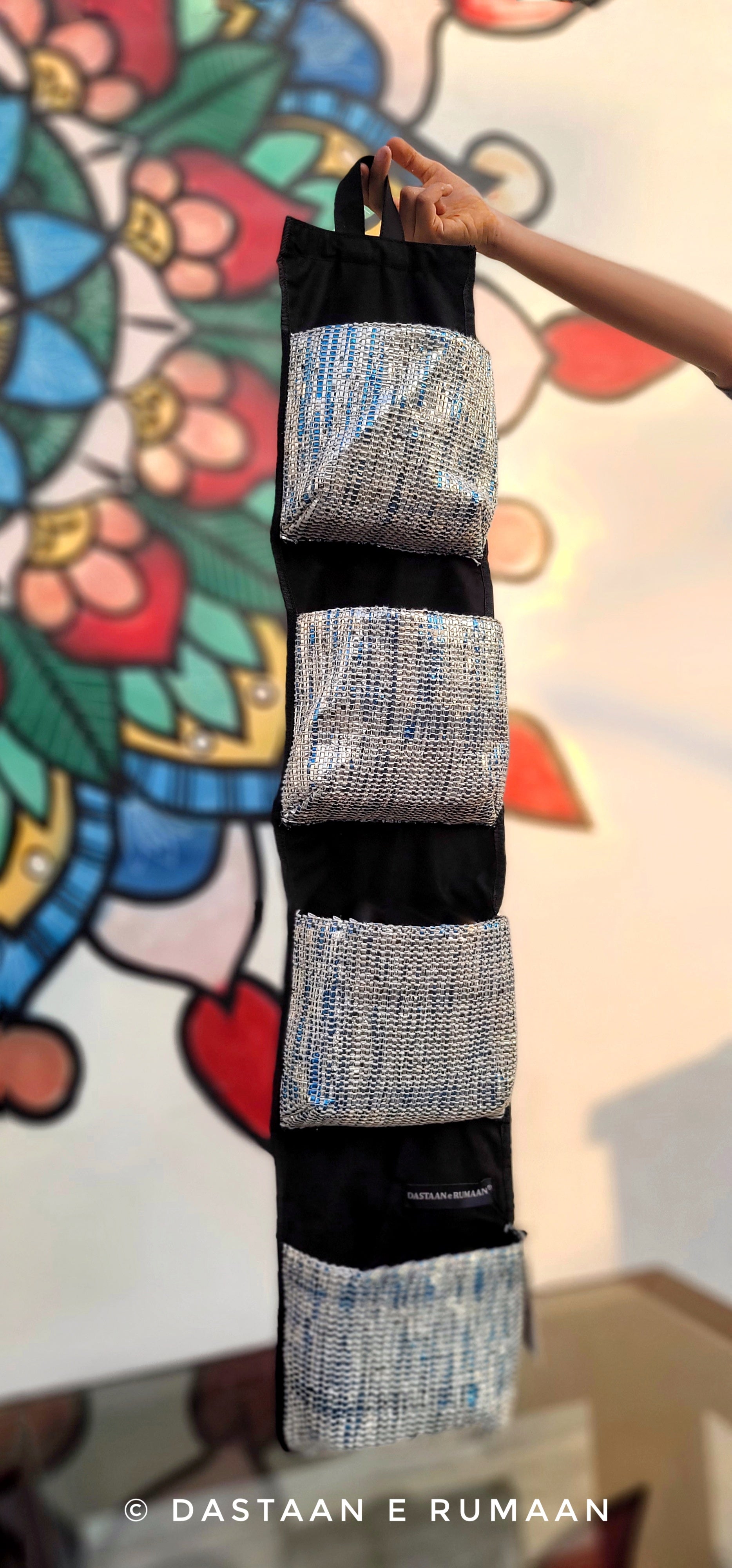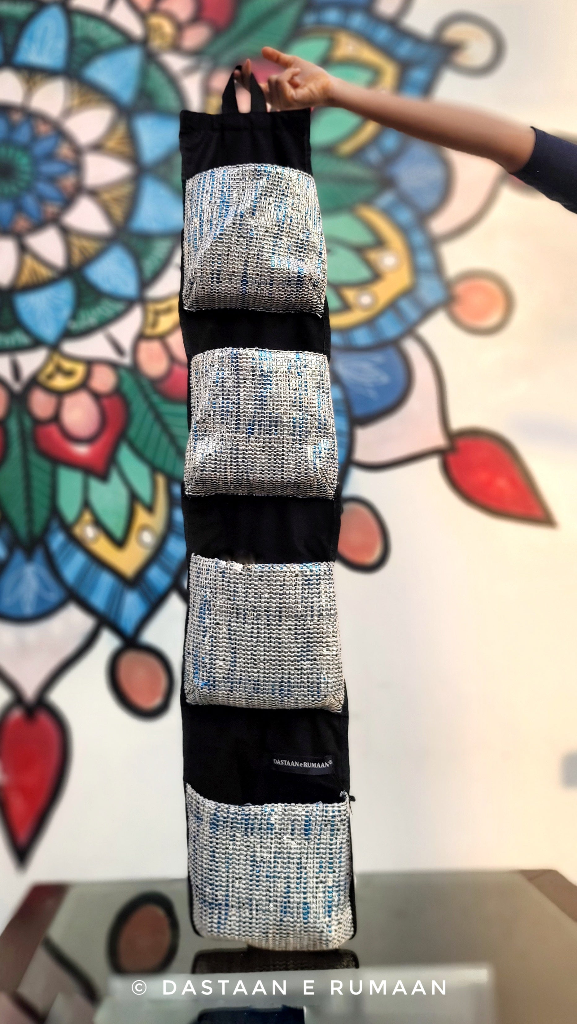 This product is handmade using post-used plastic wrappers and multilayered packaging, collected and transformed through an eco-conscious weaving process. Recycler Rumaan is sustainable project of Dastaan E Rumaan ®, each piece reflects our commitment to sustainability and craftsmanship.