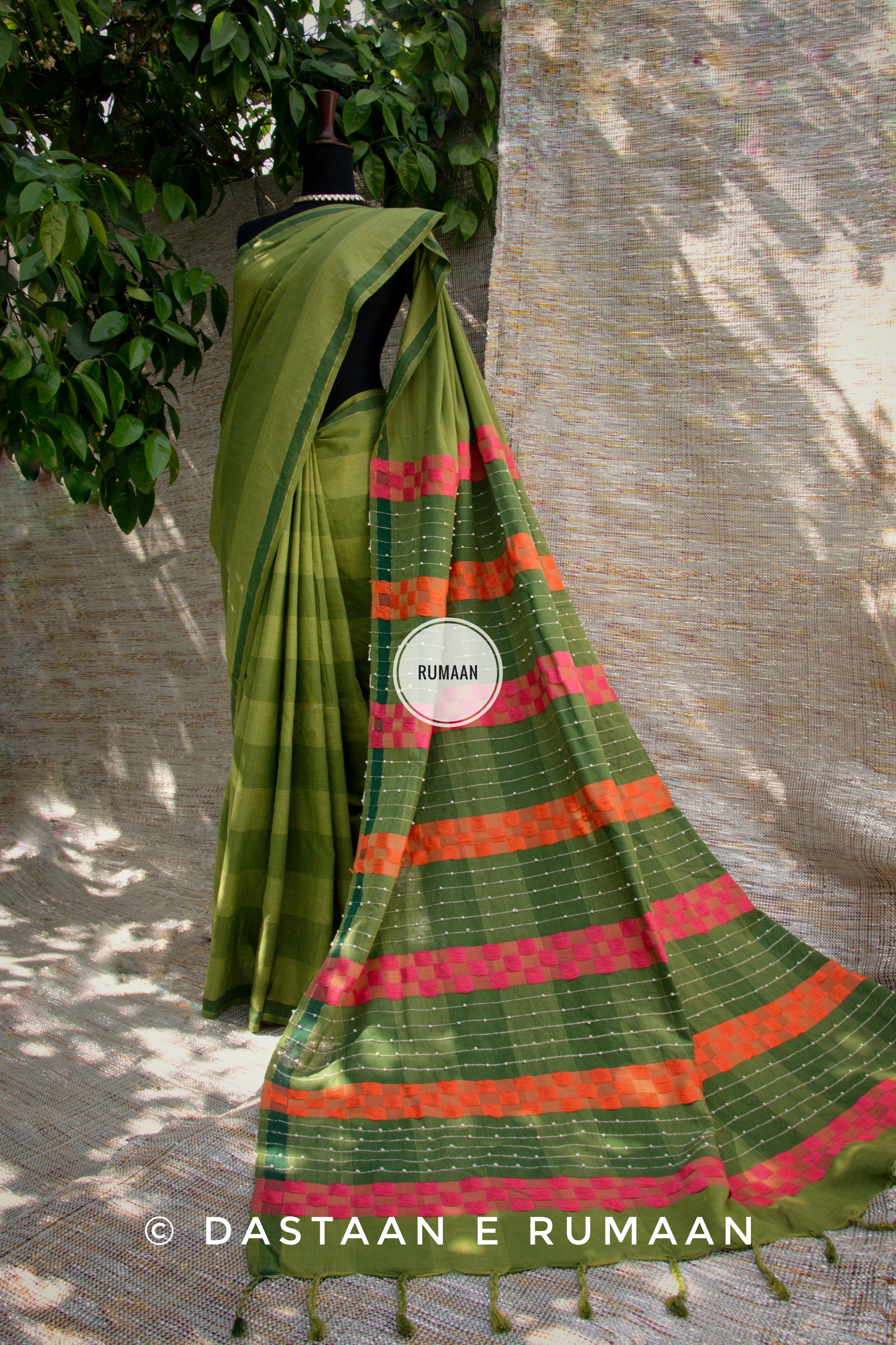 RUMAAN's Beautiful hand woven pure cotton stitched saree. Add a touch of timeless classics in your everyday style.