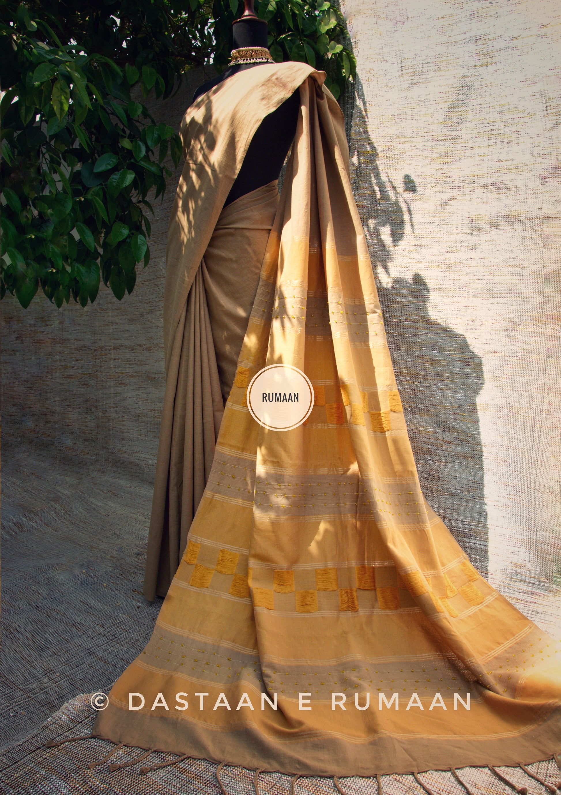 RUMAAN's Beautiful hand woven pure cotton stitched saree. Add a touch of timeless classics in your everyday style.